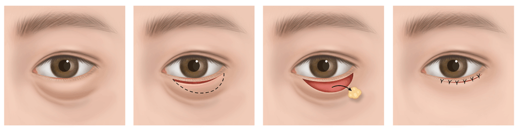 Lower eyelid procedures address under-eye puffiness, bulging fat, or lax skin. There are generally two main approaches:
