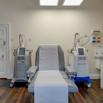 Cranley Clinic is one of only a small number of UK centres with two CoolSculpting systems, allowing dual sculpting to treat two areas at once and reduce treatment time by half. Procedures are carried out in a dedicated CoolSculpting suite equipped for comfort and privacy.