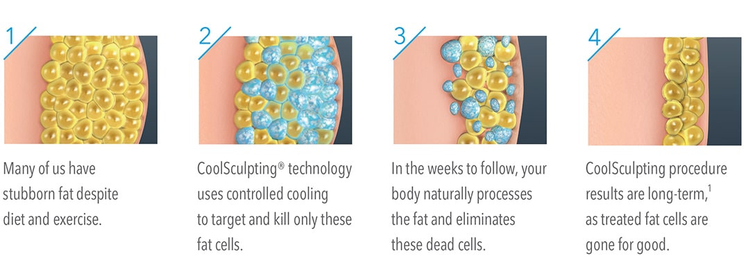 CoolSculpting works by cooling down fat cells to the point that these cells crystallised. By crystallising fat cells, they will start to break down and are subsequently flushed from the body over the course of the followin